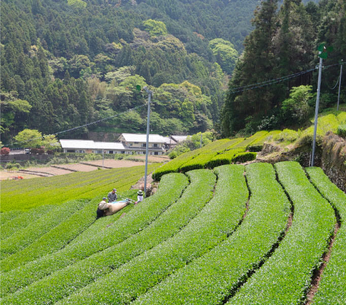 摘採2週間前に覆いをし、直射日光を遮ることで、茶葉を柔らかくし、茶葉に含まれるアミノ酸を増やし緑濃いお茶に仕上げます。香り高く、全国的に人気のあるお茶です。